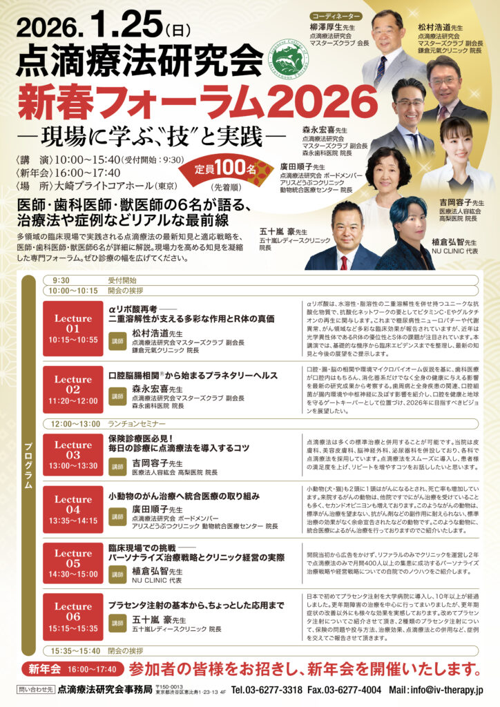 「点滴療法研究会 新春フォーラム2026 -現場に学ぶ、”技”と実践-」を開催いたします。