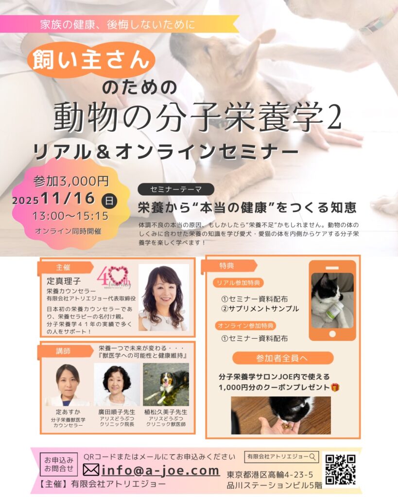 「飼い主さんのための動物の分子栄養学2」を開催いたします。